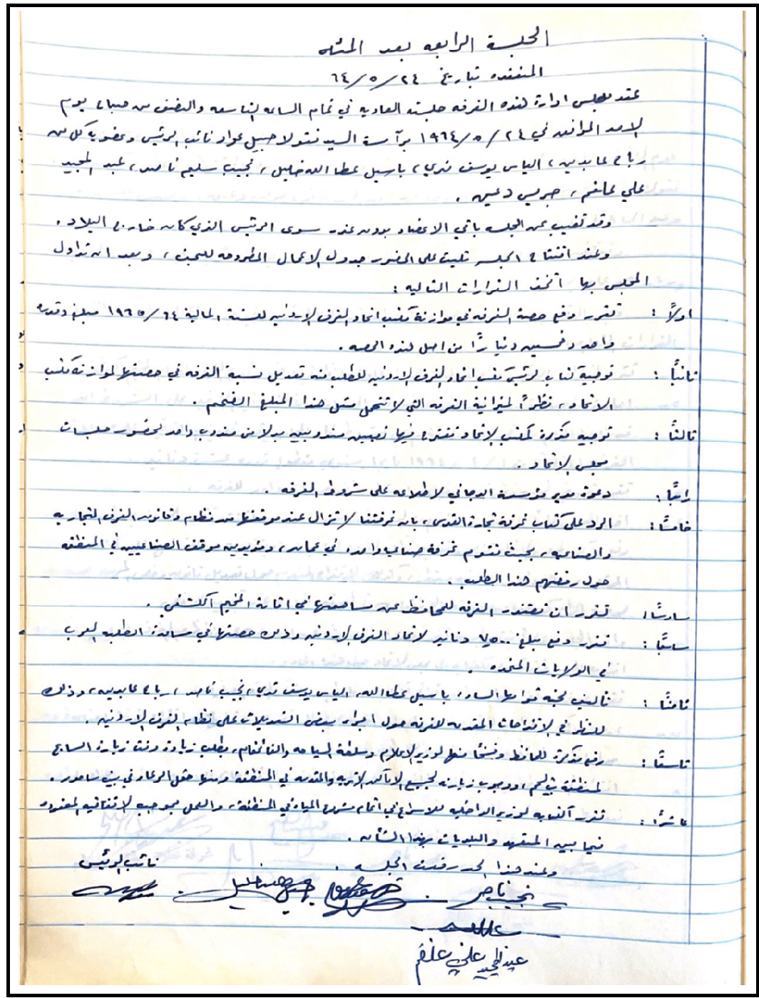 الجلسة الرابعة بعد المائة لغرفة تجارة وصناعة محافظة بيت لحم عام 1964