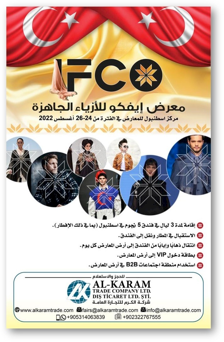 تهديكم غرفة تجارة وصناعة محافظة بيت لحم أطيب التحيات، و نرفق لحضرتكم ما ورد الينا من شركة الكرم للتجارة و تنظيم المعارض بخصوص المشاركة في معرض اسطنبول الدولي للموضة و الملابس الجاهزة و المنعقدعلى ارض مركز اسطنبول خلال الفترة الواقعة ما بين 24-26 آب 2022 ، حيث تتضمن المشاركة ما يلي :
