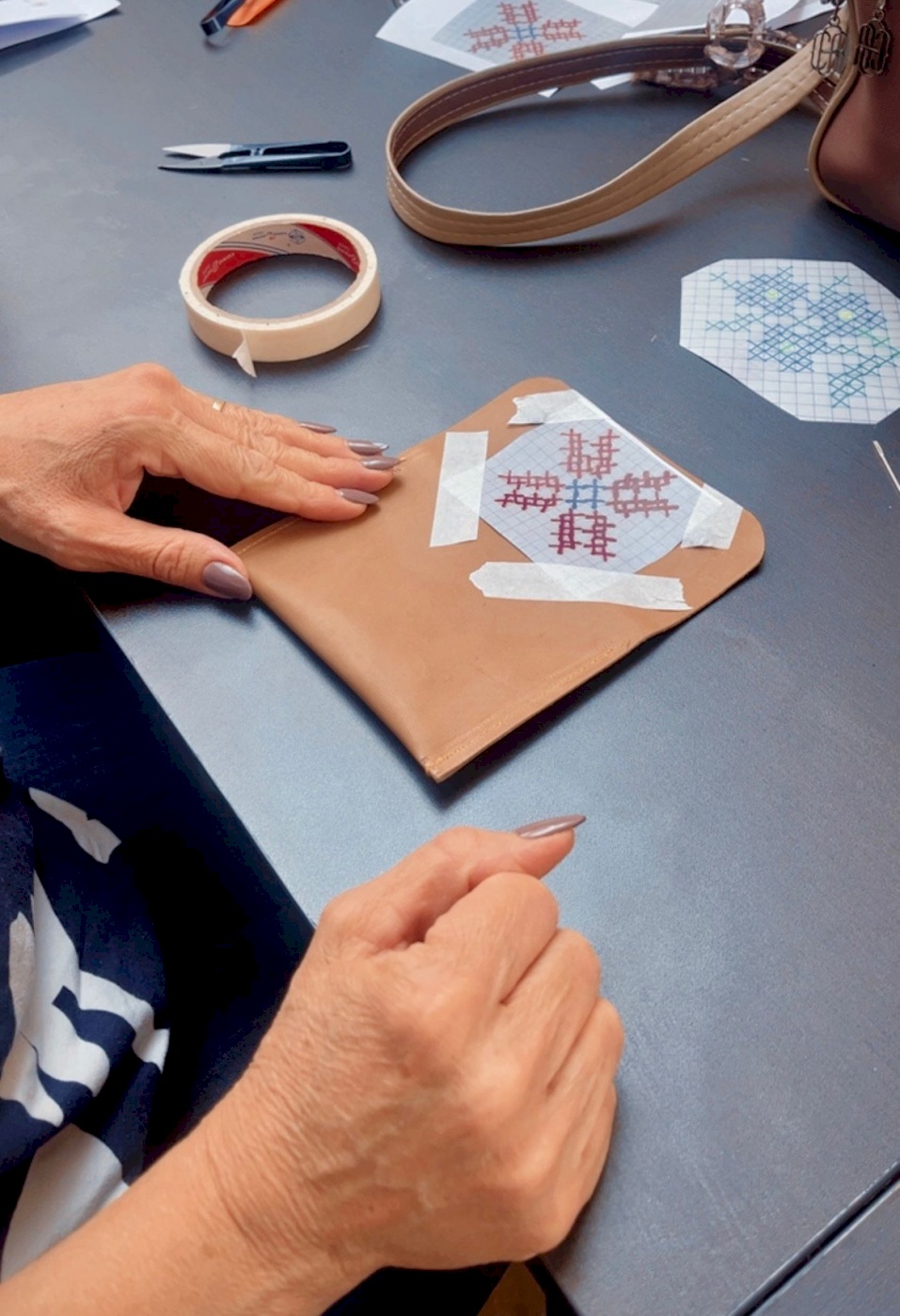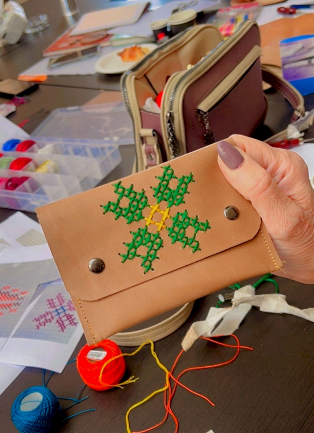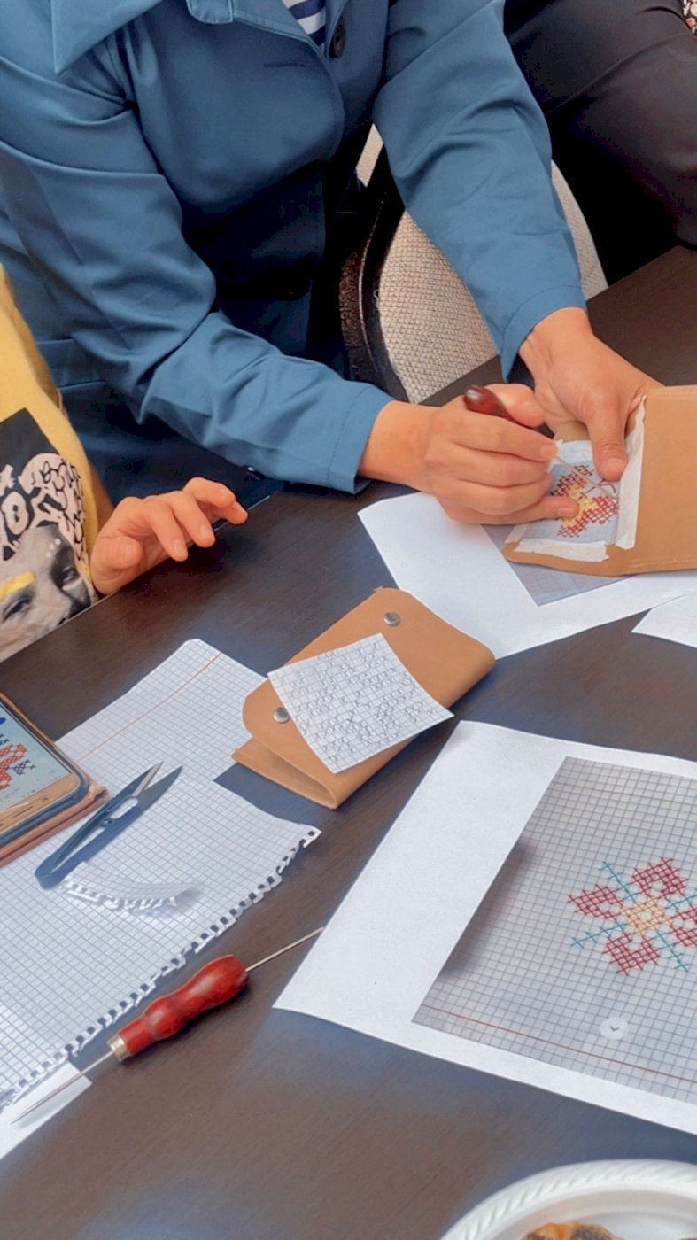 تضمنت الورشة، التي قدّمتها السيدة عبير بريجية، تدريبات عملية تفاعلية حول أدوات وتقنيات التطريز على الجلد، والتفريق بين الجلد الطبيعي والصناعي، إلى جانب تطبيقات عملية على قطع فنية مستوحاة من النقوش الفلاحية والخط العربي. وتمكّنت المشاركات في ختام الورشة من إنتاج قطع فنية يدوية مميزة عكست مهارتهن الإبداعية وقدرتهن على الدمج بين الأصالة والابتكار، ما عزّز ثقتهن بأنفسهن وفتح أمامهن آفاقًا جديدة للتطوير والإنتاج.