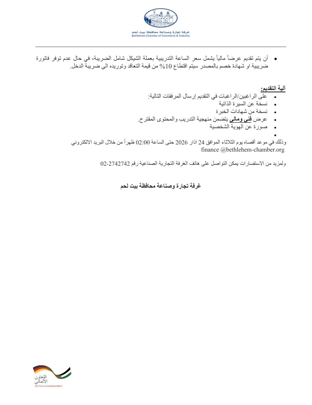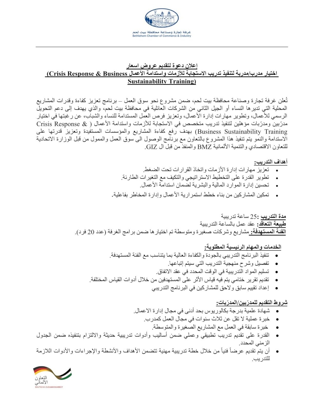 إعلان دعوة لتقديم عروض اسعار - اختيار مدرب/ مدربة لتنفيذ تدريب الاستجابة للأزمات واستدامة الأعمال (Crisis Response & Business Sustainability Training)