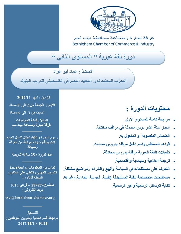 اعلان دورة تدريبية - لغة عبرية ” المستوى الثاني “