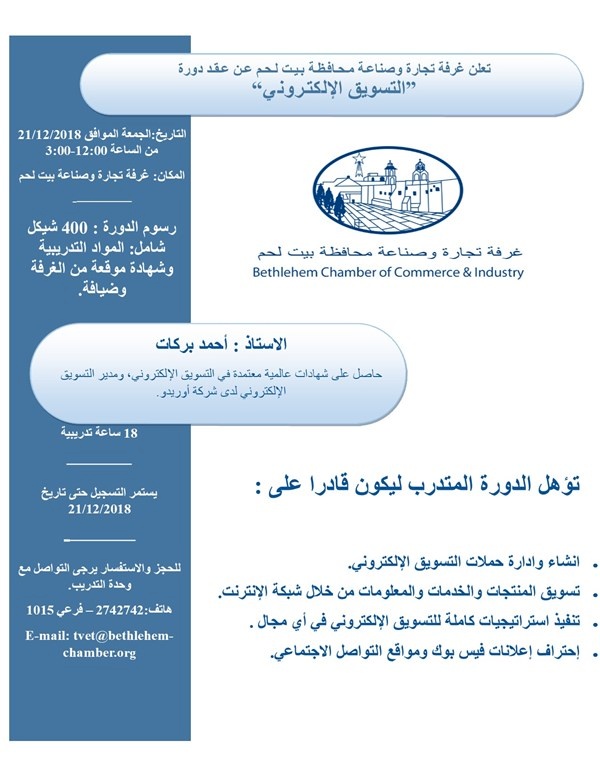 اعلان عن عقد دورة ”التسويق الإلكتروني“